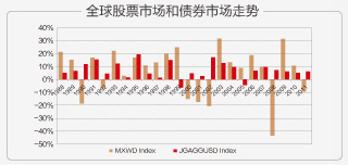 Global Aggregate Bond Index(JGAGGUSD Index)代表全球股票市场和债券市场走势。