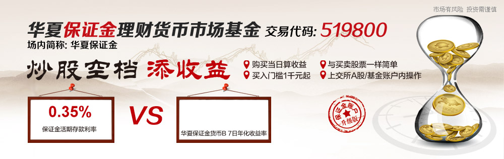 · 卖出股票后,可立即买入华夏保证金理财货币市场基金,当天即可开始享受收益。