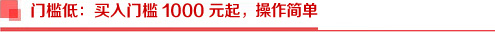 · 单笔申购最低金额仅为一千元,账户余额少也可以参与。