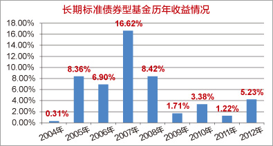 | 1、2004年以来,纯债基金(长期标准型)连续9年持续获得正收益,年化收益率达到5.68%,整体表现出稳健、低风险的特点。 |