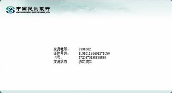 4、民生银行将验证您的银行卡信息,并进行天天盈业务绑定操作,完成后在页面上显示操作结果。